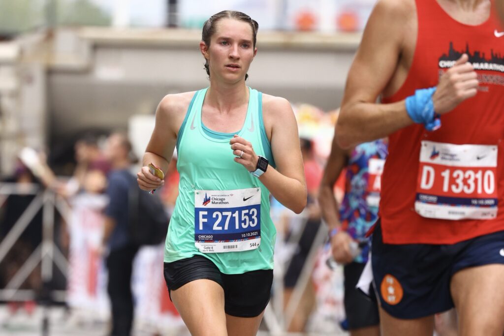 Molly Williams on her way to a 3:05 finish at the 2021 Chicago Marathon.